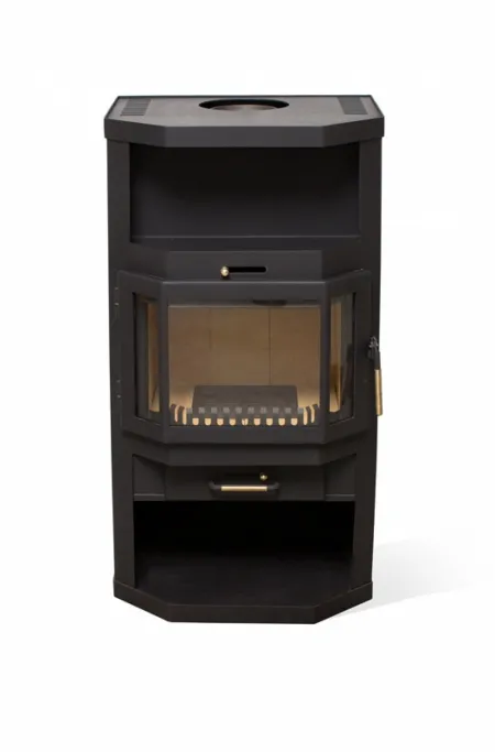 Классическая пристенная печь с панорамным обзором. Идеально подходит для обогрева помещения площадью 45-90 м2. Призматическая дверка из трех стекол высотой 330 мм. В отделке боковых поверхностей используется керамическая плитка. Размер поленьев 30-50 см. Подсоединение к дымоходу сверху или сзади.