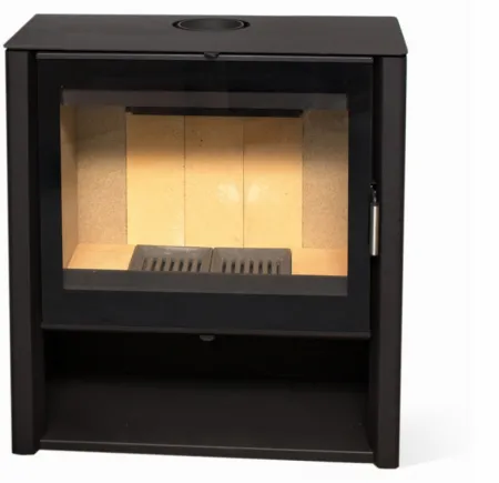 Пристенная печь с оригинальным и лаконичным дизайном. Большая плоская топочная дверка. Идеально подходит для обогрева помещения, выполненного в современной стилистике площадью 45-90 м2. Размер поленьев 30 – 60 см.
